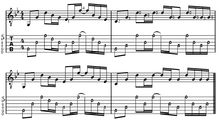 How To Play Like Sub7even Seite 2Sven verwendet bei einigen Songs des Albums, ein sehr interessantes offenes Tuning. Es basiert auf einem G Moll Dreiklang (G, Bb, D).