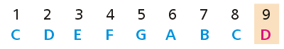 Starten wir mit der Klärung des Begriffs grosse None (gr.9): Die None ist nichts anderes, als der neunte Ton einer Skala: Schauen wir uns zu diesem Zweck einmal die C Dur Tonleiter etwas genauer an: