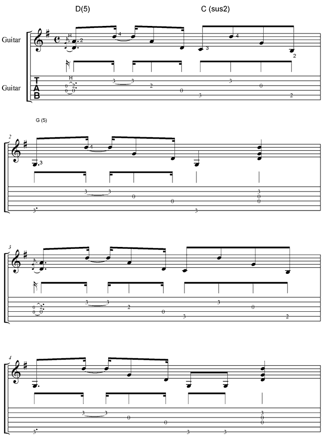 Lynyrd Skynyrd -Southern Rock Style und Inprovisation Teil 1von Hansi Tietgen In unserem neuen 2-teiligen Workshop wollen wir uns mit einigen Details rund um den Gitarrenstil des Southern Rocks auseinandersetzen. Als Vehikel für unsere Studien soll uns die Akkordfolge des Genre- Klassikers Sweet Home Alabama der legendären Lynyrd Skynyrd dienen, einem Song, den sicher jeder kennt:. Here We Go! Die Basis für unsere Improvisations-Experimente bildet der Intro/Verse Part der Nummer. Und genau mit dem wollen wir heute den Einstieg wagen. Da ist er schon: ÜBRIGENS: Bei den sporadischen Solo-Einlagen in diesem Audio handelt es sich um die zweiten Stimmen der Southern Style Impro, mit der wir uns im zweiten Teil unseres Workouts beschäftigen wollen. Also nicht wundern! Wir konzentrieren uns heute allerdings ausschließlich auf die Rhythmus-Gitarre und die verwendeten Akkorde und Skalen. Der Part besteht aus nur drei Akkorden, die durch eine spezielle Rhythmisierung und ein cooles Hammering On im "Einstiegsbereich" ihr lockeres Südstaaten-Feeling erhalten. Hier die verwendeten Akkorde in der Übersicht: Achte beim Greifen der Akkorde auf den korrekten Fingersatz und das zielgenau Dämpfen der nicht verwendeten Saiten (durch X gekennzeichnet). Denn obwohl dir die Griffe sicher bekannt vorkommen, entsteht der typische Sound des Riffs nur dann, wenn man die Terzen der Standard-Chords weglässt. Um dich optimal zu unterstützen haben wir die Töne, die zwar im jeweiligen Standard-Akkord eine Rolle spielen, in unserer Version aber auf "Standby" geschaltet werden, grau gekennzeichnet. Im Detail: Die Basis für den D5, einen reinrassigen Powerchord ohne Terz, bildet ein ganz normaler D-Dur Griff. Die überschüssige Terz im 2.Bund der E-Saite (F#) wird einfach weggelassen. Um sicher zu stellen, dass die E-Saite nicht mitschwingt greift man den 3.Bund auf der B-Saite am Besten so, dass der hierzu verwendete 4.Finger die benachbarte Saite berührt. Das geschieht ganz einfach durch das leichte Erhöhen des Anstellwinkels des Fingers. Beim Csus 2 Akkord verhält es sich ganz ähnlich. Würde man den grau markierten Ton mitspielen (die große Terz) hieße der Akkord nicht mehr sus2, sonder add9. Kompliziert? Nö, eigentlich nicht! Also: Sus ist die Abkürzung für Suspended. In einfachen Worten erklärt bedeutet das: Bei einem Akkord der dieses Kürzel im Namen trägt, wird die Terz weggelassen und durch einen anderen Ton ersetzt(sus2, oder sus4). In unserem speziellen Fall geschieht dies durch das D, die kleine Sekunde (2), gespielt im 3.Bund der B.Saite. Der C-Dur Akkord mutiert also zum Csus2. Würde man allerdings die Terz mitspielen (E, grau markiert), und auch die hohe E-Saite mitklingen lassen, so wäre die Bezeichnung "sus" augenblicklich hinfällig. In diesem Fall hätte man es nämlich wieder mit einem normalen C-Dur Akkord zu tun, dem, durch das Hinzufügen des "D" auf der B-Saite, eine zusätzliche Klangfarbe spendiert wurde. Da es sich bei den, in beiden Gitarren-Versionen der Akkorde verwendeten "Ds" allerdings um ein und denselben Ton handelt (3.Bd. B-Saite), sind die abweichenden Bezeichnungen (2 und 9) vielleicht etwas verwirrend. Doch obwohl die Tonhöhen der beiden Noten identisch sind, deutet man sie in einem sus2 Akkord eben als große Sekunde (zweiter Ton der C-Dur Tonleiter), im add9 als große None (neunter Ton der Skala, ebenfalls ein D). So ist das nun mal! Erklärungsversuch: Diese Art der Deklaration resultiert aus der Tatsache, dass man bei einem Sus2 Akkord die Terz durch die, zumindest "theoretisch in unmittelbarer Umgebung" liegende "2" ersetzt, in einem Add9 Akkord allerdings eine Klangfarbe (Option) hinzufügt, die dem Akkord in den höheren Gefilden einen interessanteren Sound verleihen soll! Zurück zum Song. Beim verwendeten G5 Powerchord wird es wieder etwas überschaubarer. Hier wird, genau wie schon beim D5er, lediglich die Terz aus dem Spiel genommen. Übrig bleibt ein waschechter Powerchord, bestehend aus Grundton und Quinte. |