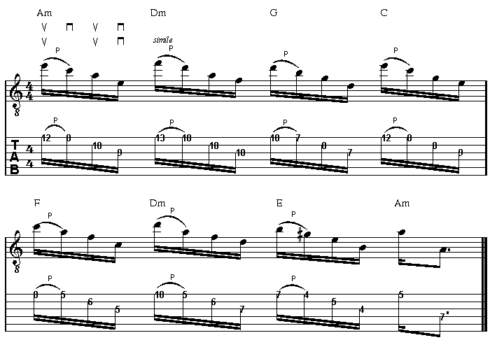 zwischen den ersten beiden Tönen eines jeden Arpeggios, ein Pull