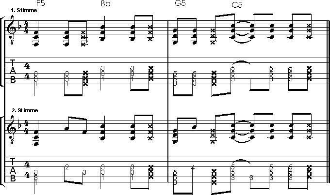 Die Akkordfolge des Songs ist äußerst griffig und basiert auf gewöhnlichen Powerchords. Diese werden, wegen des hier verwendeten Normal-Tunings, im Standard-Fingersatz gegriffen. Viel mehr gibt es zur Nummer eigentlich nicht zu sagen. Der Song ist eben einfach gut. Okay Guitarfreak, das war's mal wieder. Viel Spaß beim Üben und bis zum nächsten Mal. Hansi Tietgen