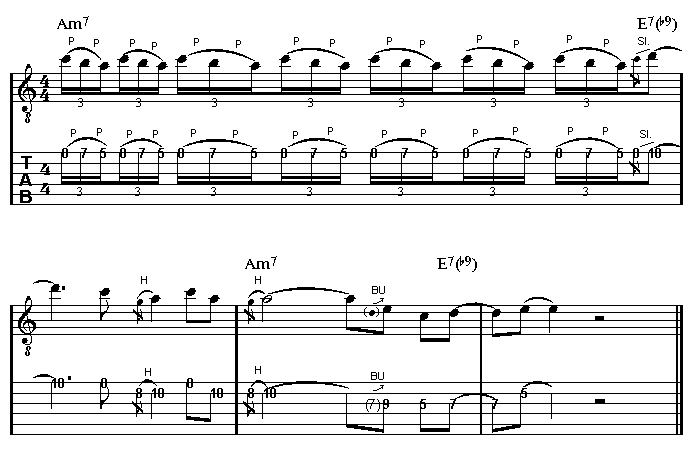 How To Play Like Carlos Santana Seite 4Doch das war noch nicht alles. Die Kombination Santana- + Repeating-Lix ist eine Never Ending Story. Hör dir doch mal das nächste Beispiel an: