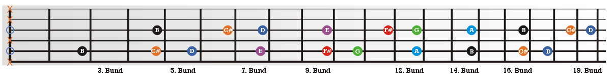 Wie du unschwer erkennen kannst, kommen auch hier wieder unsere beliebten X'e zum Einsatz. Doch wie zum T. kriegt man das jetzt wieder hin? Kein Thema! Bringe einfach deinen Zeigefinger in eine gewisse Schräglage, so dass dieser die abzudämpfende D-Saite leicht berührt. Schon ist Ruhe, du wirst sehen! Um zu gewährleisten, das dir auch die tiefe E-Saite soundmäßig nicht ins Handwerk pfuscht, solltest du mit dem freibleibenden Mittelfinger für eine gedämpfte Stimmung sorgen. Auch zu diesem Thema haben wir dir, zwecks besserem Verständnis des Beschriebenen, eine kleine Bilder-Serie anzubieten. Bilder einfügen Die Oktavgriffe sind eine nette Ergänzung zu unserem allzeit beliebten Thema Powerchording. Genau wie die Powerchords, kann man auch Oktaven in allen denkbaren Situationen zum Besten geben. Damit du die Chance hast, dich vom positiven Sound dieser Greifweise zu überzeugen, haben wir dir jetzt noch eine Übersicht der Oktaven der D-Dur Skala anzubieten. Bedien dich und lass deiner Experimentier-Freude freien Lauf: Die Oktaven der D-Dur Scale |