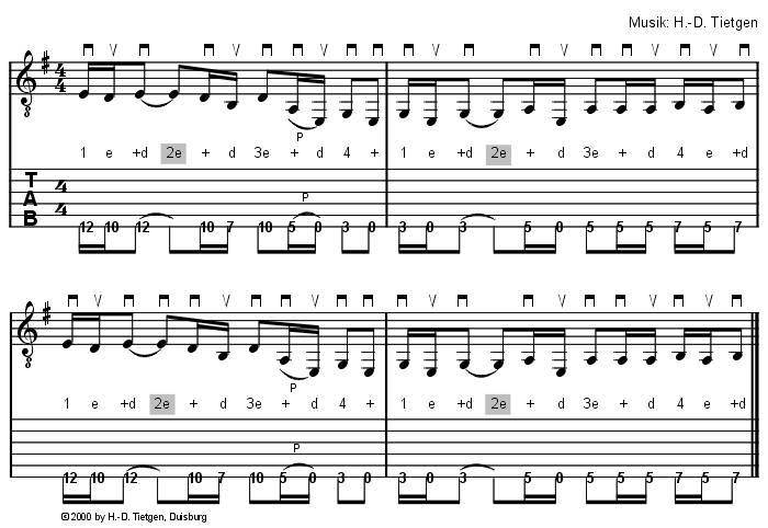 Unser erstes Riff orientiert sich stilistisch an der Spielweise von Tom