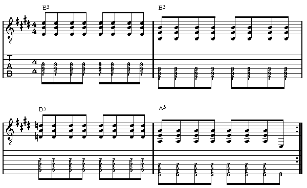 geachtelte Akkordfolge. Und hier kommt sie schon: