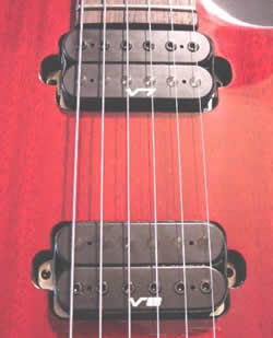 Doppelspulen-Tonabnehmer, der mehr Ausgangsleistung als der "gemeine" Single-Coil Pick-Up liefern kann. Die zweispulige Bauweise bewirkt außerdem, dass Brumm- und Einstreugeräusche unterdrückt werden.