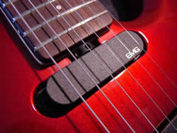 Im Hals eingelegter Stahlstab. Anhand einer Stellschraube läßt sich die Halskrümmung einstellen und eventuelle Unregelmäßigkeiten beseitigen.