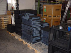 Die rohen Boxen kommen auf einer ausgeklügelten Bandstrasse am Ort des Geschehens an und werden von Hand in eine Spezialmaschine eingehängt, die sie dann den einzelnen Phasen der automatisierten Lackierung zuführt.