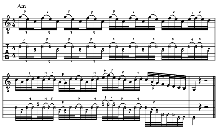 | von Hansi Tietgen Diesmal lassen wir es ruhig und rhythmisch zugleich angehen. Der Begleittrack zu unserem Lick der Woche basiert auf einer "romantischen" Akkordfolge in A- Moll. Ehrensache das meine kleine Soloeskapade auf die Töne der guten, alten A-Natürlich-Moll-Scale zurückgreift.