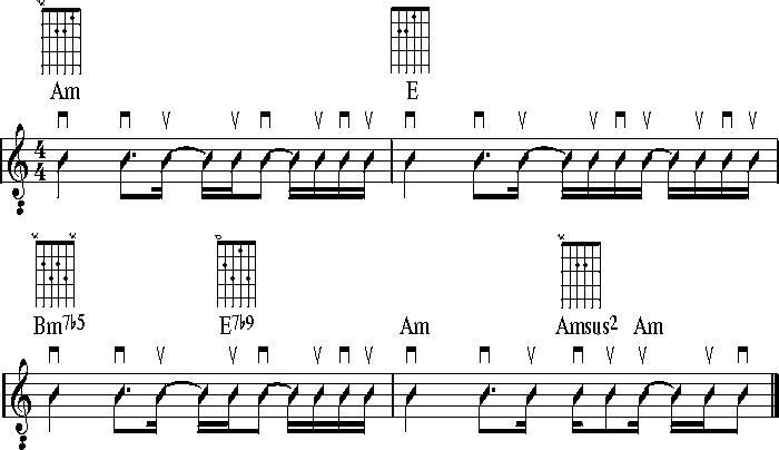 der normalen A-Moll Skala kombiniert wird. Der zweite "Auffällige"