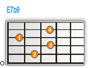 den Stellen, an denen ein E7b9, oder ein normaler E-Dur Akkord zum