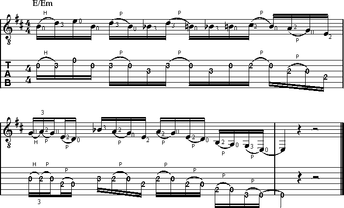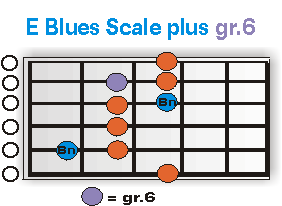 Als Tonlieferant für den Lick dient uns die folgende Version der E-Blues Scale: