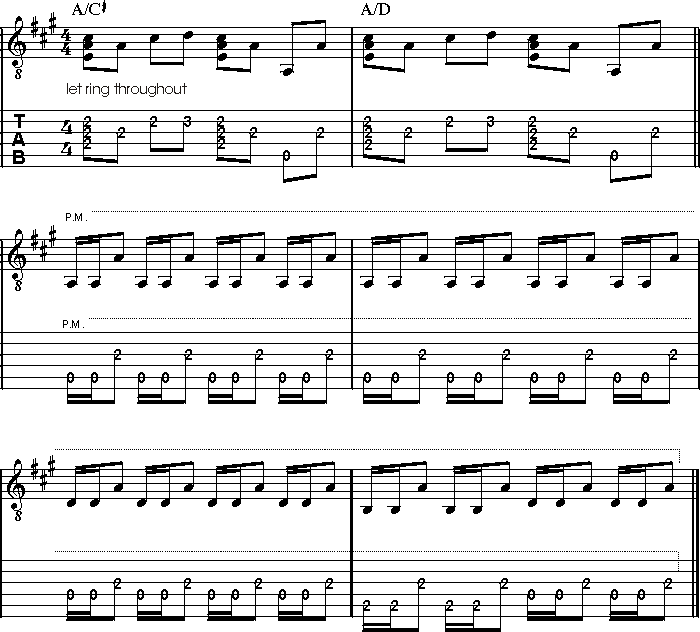 AnalyseGenau wie der bereits besprochene Verse Teil, basiert auch der Intro-Part des Songs auf der soundverbessernden Wirkung wechselnder Bass-Töne. In den ersten beiden Takten der Nummer fällt diese äußerst wichtige Aufbau-Maßnahme, Blink Bassmann Mark Hoppus zu. Während Tom sich darauf beschränkt, ein und dieselbe Akkordfigur zum Besten zu geben, wechselt der Tiefsaiter die Bass-Töne und verleiht dem Intro so seinen ganz speziellen Sound. Mark startet mit einem C# (gr.3 von A-Dur), um dann in Takt 2 auf ein D zu wechseln. Ab Takt 3 greift dann Bruder Tom wieder ins Geschehen ein! Und wieder spielen Basstöne eine entscheidende Rolle. Den Dreh- und Angelpunkt des Riffs bildet der Ton A, gespielt im 2.Bund der G Saite. In den ersten beiden Takten (3/4) verfettet Tom den Sound durch den Einsatz des um eine Okatve tieferen A's der A-Bass Saite. Und dann passiert es: Das "hohe" A bleibt stehen, aber der Bass Ton nicht. Mr. DeLonge begibt sich auf die Reise. Es geht vom D über ein B und zurück zum D. Ein typischer Fall von "Changing Bass-Notes" Das Riff ist technisch nicht einfach zu meistern, du solltest also eine gute Portion Geduld mitbringen.