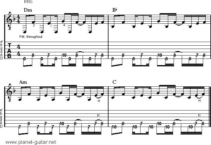 Die AnalyseDas angewendete Spielprinzip ist dem von Last Resort sehr ähnlich. Auch hier wird die Wirkung der Linie maßgeblich vom jeweils zum Einsatz kommenden Basston bestimmt. Einfach gesprochen kann man sagen, dass die Töne die auf der A-Saite liegen, in allen vier Takten identisch sind. Lediglich die Basstöne wechseln von Takt zu Takt und geben dem Riff so einen individuellen Sound. Und das war's schon wieder. Ich hoffe es hat dir Spaß gemacht und freue mich, dich in der nächsten Woche wieder begrüßen zu dürfen, wenn es da heißt: How To Play Like Creed.