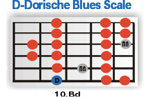 Lick der Woche 50- Highway MotelDie AnalyseTonleiter der Wahl ist die universelle, auch von AC/DC Gitarrist Angus Young zur Impro über dem Song bevorzugte, D Blues Scale. Aber das ist, eingefleischte Planet Guitar User werden es schon erkannt haben, nur die halbe Wahrheit. Einmal mehr kommt mit der D dorischen Blues-Tonleiter nämlich auch eine erweiterte Ausgabe dieses Skalen-Typus zum Einsatz. |