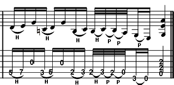 Nach diesem fulminaten Auftakt tobt sich der portugiesische Tausendsassa in einem typischen Double-Stop Funk/Blues Riff aus. |