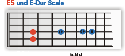 E Powerchord, den Chis mit einer coolen Linie aufgemotzt hat (Zitat aus der E-Dur Skala) . |