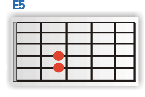 Chris startet mit einem normalen E5 Powerchord. Nach zweitaktigem "Geachtel" geht es mit dem Auszug aus einem C# Moll Akkord weiter. In Takt 5 des Verse bringt er einen A (b5) Akkord zu Gehör, einen Akkord-Typus, der auch von Bands wie Metallica gerne verwendet wird. In der normalen Powerchord-Greifweise sieht das Teil so aus: