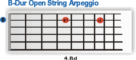 Angus Statement basiert auf zwei Arpeggien und einer Linie, die sich der B mixolydischen Tonleiter bedient. Starten wir mit den beiden Akkordspezialisten- den Arpeggien. ÜBRIGENS: "Arpeggien sind gebrochen gespielte Akkorde". Einfach gesprochen kann man also sagen, dass ein Arpeggio nichts anderes ist als ein Akkord, dessen Töne separat hintereinander gespielt werden. Im Falle "Thunderstruck" setzt Angus auf den Sound eines B-Dur, und eines E-Moll Akkords. |