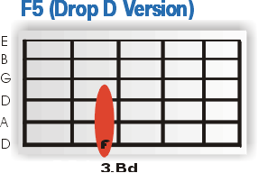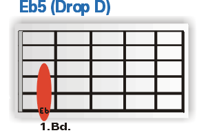 Die Basis des Songs bilden drei Powerchords. Um dem Song eine zeitgemäße Rock-Attitude zu verpassen, entschloss sich "uns Carlos" dazu , den Rhythmus-Part der Nummer zusätzlich auch auf einer heruntergestimmten Gitarre zum besten zu geben. Ob er dabei allerdings alle Saiten gleichzeitig um einen Halbton heruntergetuned hat, oder auf das beliebte Drop D Tuning zurückgriff, kann man leider nicht erkennen. Gehen wir aber einfach mal davon aus, dass Carlos dem Trend folgte und die E-Saite auf D runterschraubte! In diesem Fall stellen sich die verwendeten Akkorde wie folgt dar: |