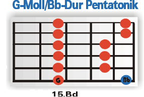ÜBRIGENS: Innerhalb dieser Skala verbirgt sich ein weiterer Tonleiter-Klassiker: Die G-Moll/Bb-Dur Pentatonik. Auch in dieser Variante hat sich Santana ausgiebig bedient: |