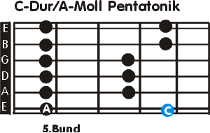 ÜBRIGENS: Die beiden Start-Töne haben wir im Griffbild separat markiert. Mit dem Ton "A" beginnend, spielst du die A-Moll Pentatonik. Startest du auf dem "C", zockst du in der C-Dur Pentatonik. Eine ausführliche Analyse des Solos findest du auf der nächsten Seite |