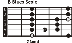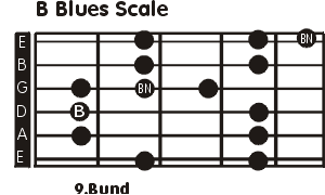 Das Tonmaterial für Lennys Soloexkurs stellt die B-Blues Scale. Das Solo startet mit einem Auftakt innerhalb des Übergangs zwischen Strophe und Refrain. Den zweiten Takt bestreitet Lenny mit einem coolen Bending-Lick. Achte beim Üben auf eine möglichst "smoothe" Ausführung. Greife dabei zunächst das "E" im 9.Bd der G-Saite mit dem dritten Finger und bende die Saite solange bis ein "F#" erklingt. Jetzt hältst du den "Draht" bis unmittelbar vor dem nächsten Bending gezogen, entspannst ihn "blitzschnell" und bist so gerade wieder rechtzeitig am Start, um "in TIme" auf der "4" ein neues Bending anzusetzen. Nach dem "Ganzton-Zieher" (wieder von E auf F#) entspannst du die Saite (ohne den Druck nachzulassen). Dieses Rebend (RB) führt dich zurück zur Ausgangsbasis unserer Bending-Attacke - dem E im 9.Bund der G-Saite (zweite Sechzehntel der "4").Jetzt ziehst du den Ringfinger von der Saite (Pull OFF)und beendest das Pattern mit der klingenden "7" . Und Achtung: Damit es richtig cool klingt, solltest du nur den ersten Ton des Bending-Lix anschlagen (das E auf der "4"- die Vorschlagnote").