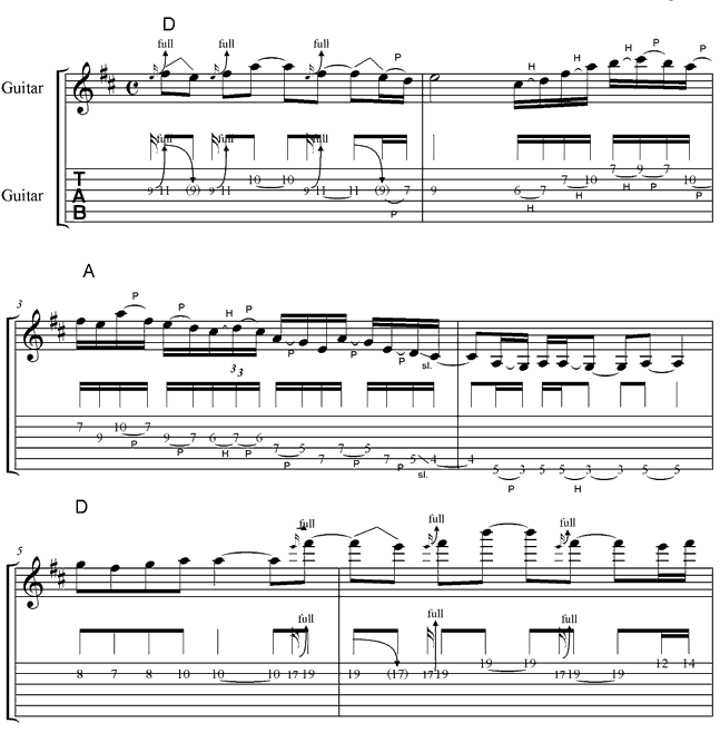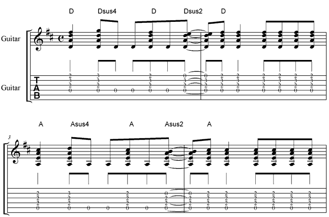 Das Riff steht in der Tonart D-Dur und setzt sich aus nur zwei Akkorden zusammen, die mit entsprechenden hardrocktypischen Verzierungen frisch gemacht wurden. Folgende Chords kommen zum Einsatz: