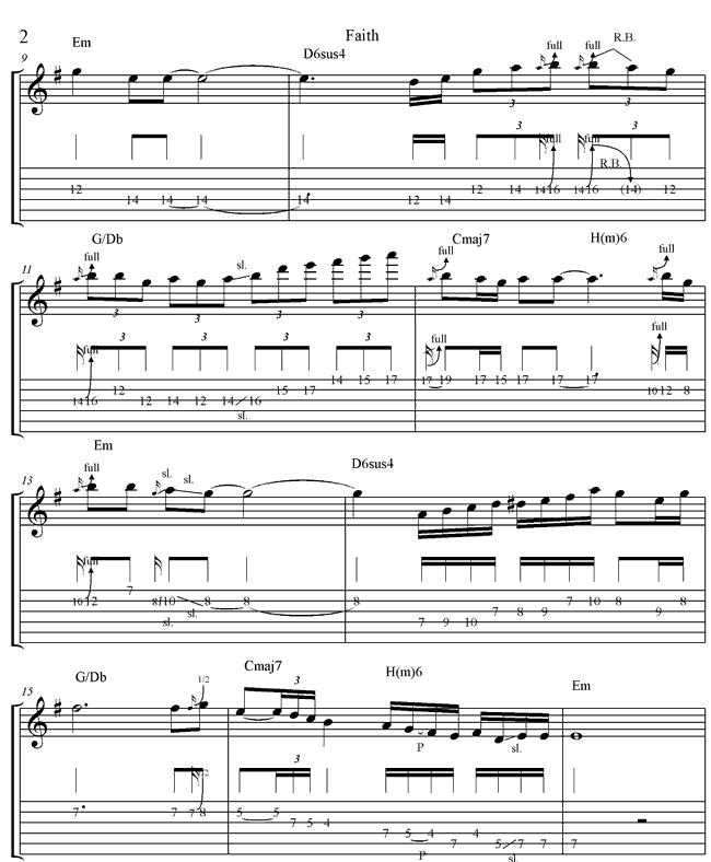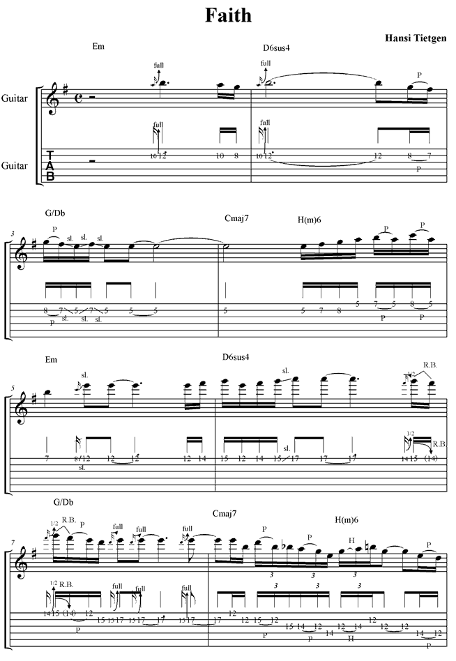 Bevor wir uns um das Solo kümmern, wollen wir zunächst einmal einen Blick auf die Akkordfolge werfen. Das hinterlegte Audio kann dir selbstverständlich als Play-Back für deine eigenen Versuche mit der Improvisation dienen. Also am besten gleich downloaden! Faith- Der Jam Track hören...