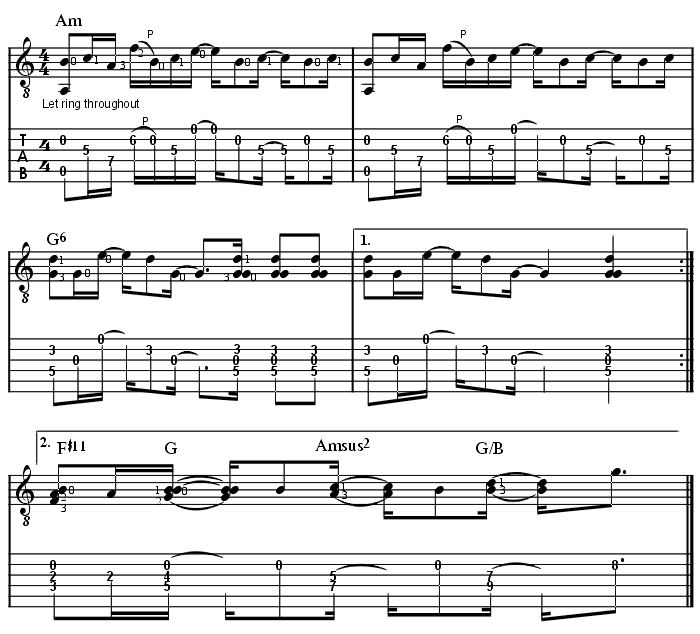 Pentatonik Improvisation - Specialvon Hansi Tietgen Mittlerweile bist du auf dem besten Wege, dich, was dein Wissen um die Moll Pentatonik angeht, zu einem echten Experten zu entwickeln. Damit zwischen Folge 4 und 5 unseres großen Pentatonik Workouts auch garantiert keine Langeweile aufkommt haben wir uns überlegt, als Pausenfüller eine etwas opulentere Studie zwischenzuschieben. Planet Guitar User, die schon in der Weihnachtszeit unsere Site besucht haben, werden den Jam Track zum Thema vielleicht schon kennen. Er diente damals als Backing für unseren "Wer spielt das heißeste Solo"-Contest! Das Solo It's Time To Remember mit dem wir uns auf der nächsten Seite etwas genauer auseinandersetzen wollen, arbeitet auschließlich mit Tönen der A-Moll Pentatonik. Es stammt aus meinem Buch Scales 'n' more, das im letzten Jahr im Leu-Verlag Bergisch Gladbach erschienen ist. Der Jam Track zum Solo steht wie soll es auch anders sein ebenfalls in A-Moll und macht, dank forciertem Einsatz von Open-Strings, soundmäßig ziemlich was her. Überzeuge dich selbst! It's Time To Remember - Audio abspielen: Der Jam Track