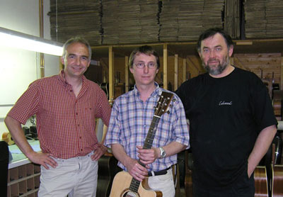 Lakewood D-14 für Elixir® Strings GewinnerDass es sich doppelt und dreifach lohnen kann, Elixir® Saiten zu spielen, das konnte kürzlich Peter Müller aus Wetzlar erfahren: Im Frühjahr diesen Jahres gab es eine limitierte Anzahl von Elixir® Saitenpackungen mit Rubbel-Gewinnaufklebern. Mit seinem freigelegten Gewinncode zog Peter einen Hauptgewinn und entschied sich für eine Lakewood D-14. Da die Gitarre nicht einmal 15 Kilometer von seinem Wohnort entfernt das Licht der Welt erblickte, konnte er sie quasi gleich an ihrem "Geburtsort" in Empfang nehmen. Der gelernte Modellschreiner nutzte die Gelegenheit zu einer Besichtigung und ließ sich mit großem Interesse von Lakewood Chef Martin Seeliger in die Geheimnisse des Gitarrenbaus einweihen. |