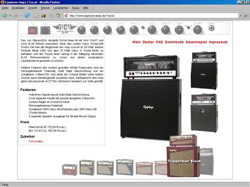 Neue Website www.epiphone-amps.de onlineDie neue Website epiphone-amps.de widmet sich den aufstrebenden neuen Epiphone Gitarrenamps, die mit einem sympathischen Vintagekonzept aufwarten. Unverwechselbares Design, großartiger Sound und das beeindruckende Preis-/ Leistungsverhältnis zeichnen die Epiphone Amps aus, die die amerikanische Gitarrenschmiede Epiphone nun um die Modelle SoCal50 und BluesCustom30 erweitert hat... Also sofort auf epiphone-amps.de surfen und dort alle Infos bekommen. Bildmaterial und interessante Downloads sind ebenso zu finden wie eine detaillierte Händlersuchmaschine, die dem Besucher verrät, bei welchem authorisierten Händler eine große Auswahl der Epiphone-Amps zu finden ist. Weitere Informationen zu den neuen Epiphone Amps und der neuen Website gibt es beim deutschen Vertrieb: M&T, Musik & Technik GmbH …und auf der amerikanischen Website www.epiphone.com. |