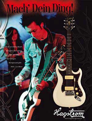 Mach Dein Ding! Le Mans Gitarrist Pehr ist ein HagströmerHier einige Statements von Pehr zu seinen neuen Hagstrom Instrumenten: Wie bist Du ursprünglich auf Hagstrom Gitarren gekommen? Mein erster Kontakt mit einem Hagstrom war als ich jünger war und eine der ursprünglichen Deluxe Gitarren auslieh - diese Gitarre war mit "Kuststoff" überzogen. Was hörst Du und was hat Dich beeinflusst? Ich wuchs mit Bands wie Kiss, Motley Crue und andere Hard Rock Bands mit ähnlicher Richtung. Heute höre ich Musik und Bands in vielen verschiedenen Styles, nicht nur das, was die meisten gitarrenorientierte Musik nennen würden. Eine der Bands, die ich im Moment wirklich sehr mag, ist Kraftwerk. Wie würdest Du Deinen Spielstil beschreiben? In Richtung Punk gehend, lärmend - laut und mit der richtigen inneren Einstellung, ein bisschen wie Sex Pistols. Man muss nicht die Regeln der Musik befolgen, wie z. B. Tonleiter - wenn die Musik gut klingt, ist sie gut! Auch wenn die musikalischen Regeln gebrochen werden und man einen "sonderbaren" Akkord spielt. Du spielst mehrere Hagstrom Gitarren, was hältst Du von denen? Live spiele ich hauptsächlich eine F200P, die wirklich gut funktioniert. Sie ist leicht und recht schlank, was für meine Zwecke perfekt ist. Die Soapbar Pickups klingen wie etwas zwischen Humbucker und gewöhnlichen Single Coils, sie haben genau den richtigen "Twang"- und diese Gitarre ist niemals verstimmt. Was machst Du und Deine Band gerade? Wir üben, schreiben und nehmen neue Songs für unser nächstes Album auf. Zwischen den Sessions haben wir einige Gigs und bereiten den Launch unseres Debut-Albums vor, welches im Herbst erscheinen wird. Wie würdest Du Hagstrom mit nur wenigen Worten beschreiben? Robust, gute Verarbeitung, sieht echt cool aus! Weitere Infos zu Hagstrom Gitarren gibt es unter www.hagstromguitars.de |