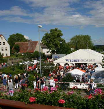 Nach einem musikalischen Gottesdienst der gegen halb elf begann, hatten die Gäste die Möglichkeit sich (insgesamt ca. 8000 Besucher) beim Frühschoppen auf die Ereignisse des Tages einzustimmen. Begleitet wurden sie dabei von der Band "Spontan". Im Anschluss sorgte die belgische Schulband HAMA für Stimmung bei Jung und Alt. Um 13.00 Uhr betrat schließlich die -per Helikopter eingeflogene - Teenager-Kapelle Blues-Kids die Bühne. Star Search Absolvent Johannes und seine Kollegen heizten richtig ein und ließen so manches Teenager-Herz höher schlagen. Nach ihrem Gig gaben die Jung-Rocker Autogramme und stellten sich bereitwillig den Fragen ihrer Fans. Danach rückten die Freunde gepflegter Instrumentaldarbietungen ins Zentrum des Interesses. Ausnahmedrummer Louis Santiago jr. und Gitarrist Geoff Whitehorn zeigten auf der Hauptbühne wie´s richtig geht. Später am Nachmittag hatten ambitionierte Musiker dann die Möglichkeit den beiden Virtuosen in intensiven Workshops auf die begnadeten Finger (und Drum-Sticks) zu schauen. Und wer anschließend noch immer nicht genug hatte der konnte sich in weiteren interessanten Workshops zu den unterschiedlichsten Themen mit neuen Ideen und Trix aus erster Hand versorgen. In Treppendorf zogen in der Zwischenzeit drei riesige Limousinen die Blicke der Passanten auf sich. Insassen der Luxusgefährte: die Scorpions! Wow! Natürlich hatten sich die stachligen "Krabbeltiere" nicht verfahren und waren nur durch Zufall durch den Ort gekommen und so konnte man die Rocker bereits kurz nach dem filmreifen Limo-Auftritt "jammend" auf der Hauptbühne bewundern. Optisch, wie akustisch ein Genuss war der nachfolgende Auftritt der österreichischen Sängerin und Schauspielerin Sandra Pires, die bereits mit Größen wie Eros Ramazotti und Trevor Horn arbeitete und deren CD "Here I Am" mittlerweile Goldstatus erreicht hat. Das Tanzbein entgültig zum vibrieren brachte dann die Band Soul Kitchen. Die Combo um den als echte Stimme von Milli Vanilli bekannt gewordenen Sänger und Bassisten John Davis heizte dem Publikum mit fetten Funk-, und Soul-Grooves ein und sorgte für knisternde Stimmung