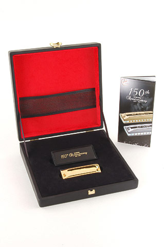 Anlässlich des 150 jährigen Hohner Jubiläums 2007 entwickelte die Trossinger Instrumentenschmiede eine Mundharmonika mit weltweit einzigartigem Kristallglas - Kanzellenkörper. Die Anniversary Edition erscheint mit zwei limitierten und einer Standard Version. 150th. Anniversary Gold - Edition, mit einer streng limitierten Auflage von weltweit nur 150 Stück. Geliefert werden die beiden limitierten Schmuckstücke in Lederetuis, präsentiert in einer Jubiläums - Schatulle, inklusive eines interessanten Hohner Geschichtsflyers, der die Eckdaten der 150jährigen Hohner - Ära wiedergibt. Der neue, einzigartige und von Hohner patentierte Kristallglas Kanzellenkörper bietet hervorragende Klangeigenschaften und verleiht dem Instrument auch rein optisch eine exklusive Note. Jedes Instrument ist mit einer Seriennummer versehen. Unterstrichen wird das klassische Design durch komplett vergoldete Deckel und 1,05mm starken und ebenfalls vergoldeten Stimmplatten. Details:- Messing Stimmplatten vergoldet 1,05mm Best. Nr. HO-M27002 Netto/ : 355,00 Brutto/ : 568,00 150th. Anniversary Chrom - Edition...in einer limitierten Auflage von weltweit 1857 Stück (Gründungsjahr des Unternehmens). Auch hier kommt der neu entwickelte Kristallglas - Kanzellenkörper zum Einsatz. Details:- Messing Stimmplatten verchromt 1,05mm Best. Nr. HO-M27001 Netto/ 180.62 Brutto/ 289,00 |