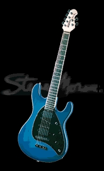 Neben der getesten schwarzen Version mit Floyd Rose Tremolo, gibt es die Gitarre in Deutschland und Österreich auch noch in einem sehr schönen Blau: Genau Bezeichnung: MM-SM-8 (Blueburst). Diese Gitarre kommt ohne Tremolo und kostet inkl. Music Man Super Koffer DM 4.815,- U.V.P. |