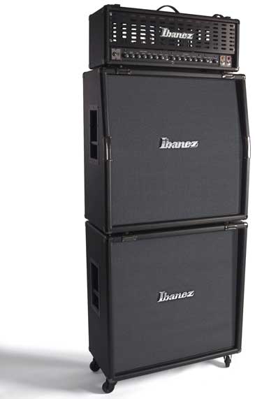 Der Trend geht in Richtung Röhre: Nachdem Ibanez im Gitarrenamp-Programm der letzten Jahre hauptsächlich auf Halbleiter-Technik setzte, verblüffte die japanische Firma die Szene Ende 2005 mit dem Release des ValBee, eines 5 Watt starken, kompakten Vollröhren Übungs- und Recordingamps, mit einem Riesensound. Mit dem 120 Watt starken Thermion TN120 und zwei passenden 4x12“ Cabinets, wagt Ibanez jetzt auch den Schritt auf die Rockbühne. Und wenn ich mir das Teil so anschaue muss ich sagen: Rein optisch betrachtet, macht man mit diesem Stack im Rücken „On Stage“ garantiert Eindruck. Doch genug des oberflächlichen Geplänkels. Lasset die Spiele beginnen: Los geht’s mit dem Amp. Das Gehäuse des Thermion TN120 besteht aus 1,6 cm starkem Birkensperrholz, das mit einem leicht strukturierten Kunstleder bespannt wurde. Für ausreichend Stabilität wäre also gesorgt. Für das Stemmen des 74 x 29 x 26 cm messenden und 24 kg schwere Amps bietet Ibanez gleich zwei Möglichkeiten an. Einhand-Träger wählen den mittig angebrachten Griff. Wer lieber beide Hände verwenden möchte, der klinkt sich in die beiden seitlich angebrachten „Träger“ ein. Front und Heck des Gehäuses sind durch schwarz lackierte, „Absperrgitter“ aus gebürstetem Aluminium verschlossen. Üppig gefräste Luftlöcher sorgen für den nötigen Durchzug. Auf dem soliden, mit vier Schrauben von unten mit dem Gehäuse verschraubten Elektronikchassis, thronen die beiden Trafos (HiFi Ausgangstrafo und ein großzügig dimensionierter Ringkern-Netztrafo ) und fünf 12AX7 Vorstufenröhren (Ruby Tubes). Separate Abschirmkapseln für alle Vorstufenröhren sorgen für einen nebengeräuscharmen Betrieb. In der Endstufen-Sektion geht es „amerikanisch zur Sache“: Hier verrichten vier handselektierte 6L6GC Endstufen-Röhren (Premium Ruby Tubes, gematched) ihren schweißtreibenden Job. Der 2-kanalige Amp lässt sich wahlweise aber auch mit 6550 Endstufenröhren betreiben. Grundsätzlich sollte beim Wechsel des Röhrentyps, oder der Marke (Hersteller), ein Nachjustieren des Bias vorgenommen werden. Um an die Bias-Sektion zugelangen, muss beim TN120 lediglich die Rückplatte des Elektronikchassis abgeschraubt werden. Mit dem, am Rand des Elektronik-Chassis liegenden Bias SCHALTER, lässt sich dann mit einem Handgriff eine (grobe) Bias-Voreinstellung (Bias=Ruhestrom) für unterschiedliche Endstufen-Röhrentypen vornehmen. Dass, für die Feinabstimmung nötige Bias Trim-Poti und die Messpunkte, finden rechts und links neben dem Bias-Schalter Platz. Aber Achtung: Da im Inneren des Verstärkers Stöme von lebensbedrohlich hoher Stärke fließen, sollte man sowohl den Röhrentausch, als auch das nachfolgende Einjustieren des Bias, ausschließlich technisch qualifiziertem Fachpersonal überlassen! Zurück an die Front. Neben dem schwarzen Alu-Gitter wird die Optik der Ampvorderseite durch ein orange beleuchtetes Ibanez Logo und beleuchtete Regler geprägt. Das sieht nicht nur scharf aus, sondern erleichtert auch das Ablesen der „Pegelstände“ auf dunklen Bühnen. Der Bedienelemente des 2-Kanalers sind klar strukturiert. Verchromte Potiknöpfe (mit gut erkennbaren „0“ Fräsungen) und Metallplatten im Bereich unter der Input-Sektion, und der Ein/Aus- und Standby-Schalter bilden einen attraktiven optischen Kontrast zum schwarz lackierten Panel. Arbeiten wir uns jetzt einmal quer durch die angebotenen Front-Features. Los geht es links mit dem Input (Eingangsempfindlichkeit schaltbar). Rechts daneben folgen die Bedienelemente des Vintage-Kanals. Erstes Feature ist der Bright-Schalter, mit dem sich die Höhenwidergabe des Kanals in drei Stufen voreinstellen lässt. Der Gain-Regler dient der Anpassung des Verstärkungsfaktors und liefert, je nach Einstellung, ein breites Spektrum von Clean- bis Crunch. Der Bereich neben dem Gain-Controller ist für den klassisch passiv ausgelegten 3-Band EQ des Kanalzugs reserviert (Regler beeinflussen sich gegenseitig). Eine intensive Möglichkeit den Sound mit feinen Brillanzen zu versorgen, bietet der Presence-Regler. Der Regler arbeitet am Ende der Vorstufe und kontrolliert die Frequenzen oberhalb des Treble-Reglers. Die Anwahl des Hot-Kanals erledigt ein robuster 2-Wege Schalter. Rechts von ihm schlägt das HiGain Herz des Thermion. Den Grad und Charakter der gelieferten Verzerrung kontrolliert der Gain-Regler, in Kombination mit dem Damping-Schalter (auch per Fußschalter schaltbar). Der kleine 2-Wege Schalter verändert den Dämpfungsfaktor und damit auch die Dynamik der Performance . Dabei stellt die Out-Position die modernere Soundvariante bereit. Die In-Position liefert eher klassische Klang-Attribute (siehe unten). Womit wir beim Thema wären: Wie bei klassischen Röhrenamps üblich, beeinflussen sich auch die drei Regler der passiv ausgelegten 3-bandigen Klangregelung des HiGain Channels gegenseitig. Die Oberton-Struktur und damit die Brillanz der Performance wird über den Presence-Regler justiert. Letzte Kontroll-Instanz des Kanals ist der Master-Volumeregler. Bleiben uns noch die drei frontseitigen Bedienlemente der Effektloop. Die Loop ist röhrengetrieben, per Fußschalter, oder Panelschalter aktivier/deaktivierbar und wahlweise parallel oder seriell zu betreiben. Die Stärke des über die Send- Buchsen ausgegebenen Signals sowie die Eingangsempfindlichkeit des Return-Inputs, lassen sich über zwei separate Potis (auf der Front) einstellen eine gute Sache! Die obligatorischen Standby- und Ein/Ausschalter runden die Ausstattung des Panels ab. Werfen wir jetzt noch einen verstohlenen Blick auf die Rückseite des Amps. Hier warten insgesamt 5 separate Speaker-Outputs auf Anschluss und unterstützen so alle üblichen Boxen-Kombination (1x4 Ohm, 2x8Ohm, 1x8 Ohm, 2x16 Ohm, 1x16 Ohm). Die Ausstattung des Amps wird durch die eben schon angesprochenen Send-,Return-Buchsen, den Parallel/Seriell Switch und die beiden Anschluss-Buchsen für den 3-Wege Fußschalter komplettiert. Die Cabinet
