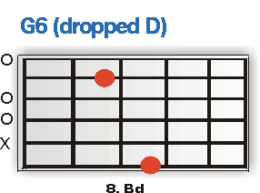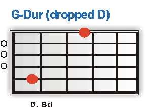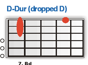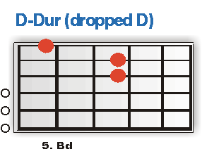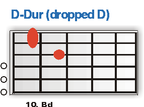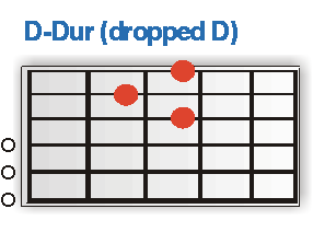 PG Chord Zone Part 8Bands wie Linkin Park, Papa Roach oder Jimmy Eat World (to name just a few), verhalfen dem Drop D Tuning zu einer nie da gewesenen Popularität. Haupteinsatzgebiet der Stimmvariante: Das Power-Riffing. Aber es geht auch anders. Dass das beliebte Drop D Tuning mehr sein kann als nur der Lieferant für knurrende Bass-Lines und fette "One Fret Powerchords" zeigen die folgenden Griffbilder. Die Chords, die wir dir im Folgenden präsentieren werden, stellen nur eine kleine Auswahl des Möglichen dar und sollen dich in erster Linie dazu inspirieren, eigene Experimente mit "normalen" Chords in Verbindung mit dem Drop D Tuning zu veranstalten. Um dennoch sicher zu stellen, dass dir die selektierten Akkord-Varianten viel Spaß bereiten, haben wir sie so zusammengestellt, dass sie tonal optimal zusammen passen. Nachfolgendes Songwriting ist also durchaus erwünscht! Drop D Normalo Chords