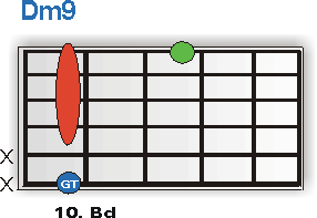 Achte beim Üben besonders auf das perfekte Ausführen der Scratches. Den besten Tipp den ich dir in diesem Zusammenhang mit auf den Weg geben kann, kennst du ja sicher schon: Bitte langsam üben! Nur so ist gewährleistet, dass du in der Lage bist dich voll auf die präzise Wiedergabe der Kombination aus verwendetem Rhythmus, Akkorden und Scratches zu konzentrieren. Außerdem können dir wieder die im Notentext angegebenen Ab- und Aufschlagzeichen dabei helfen, die Rhythmik des Patterns korrekt umzusetzen. Falls du tatsächlich den ersten Teil des Workshops verpaßt haben sollltest, weißt du, was du jetzt zu hast. Zapp rüber und hol dir die nötigen Basis-Infos! Und weiter geht's! Zum Abschluß unserer ersten Übung, hier noch einmal die verwendeten Chords in der universellen Griffbild-Darstellungen. Die optionalen Töne sind grün eingefärbt. Der jeweilige Grundton erstrahlt in kräftigem Blau.