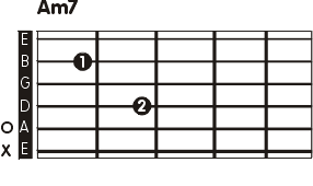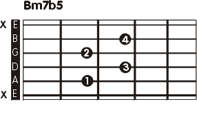 Soviel dazu. Ein bisschen Eigenwerbung darf ja schließlich auch mal sein! Jetzt aber los. Der Song mit dem wir uns in dem Workshop 2-Teiler beschäftigen wollen hört auf den Namen Just A Sad Song und rangiert in der Kategorie "Instrumental-Schmachtballade". Bevor wir aber ans Eingemachte (in diesem Fall das Solo) gehen, wollen wir uns heute zunächst einmal um die Akkorde des Begleit-Trax kümmern. Hier die sieben Teile, im typischen Griffbrett-Design.