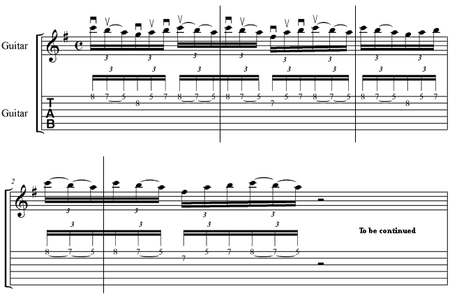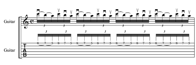 Notensatz? Kein Problem! Planet-Guitar empfiehlt Finale GuitarBevor du zur Sache gehst, solltest du dir zunächst einmal bewußt machen, an welchen Stellen des Lix gepickt und an welchen Stellen "gehämmert" wird. Außerdem gilt es exakt die angegebene Picking-Abfolge einzuhalten. Denn nur die hier verwendete Methode stellt die Dynamik und Präzision bereit die nötig ist, um das Pattern perfekt "performen" zu können. TIPP: In diesem Zusammenhang lege ich dir noch einmal ans Herz, die Übung am Anfang besonders langsam zu trainieren. Nur so es dir möglich deine Spielweise optimal zu kontrollieren. Und das ist für das Gelingen zukünftiger HiSpeed Lix mehr als wichtig. Außerdem solltest du auf jeden Fall mit dem Metronim trainieren. Fang bei Tempo bpm=60 an und steigere mit wachsender Sicherheit in Zweierschritten. Sei dabei aber bitte ehrlich zu dir und beschleunige erst dann, wenn das Pattern in einem Tempo perfekt läuft. Aber das ist noch nicht alles. Extrem wichtig ist es darauf zu achten, dass die Picking-, und HamOn/PullOff Passagen in einem gleichmäßigen Tempo ablaufen. Das geht aber nur, wenn die linke Hand so trainiert ist, dass sie Pull Offs (und Ham Ons) rhythmisch sicher ausführen kann. Falls du Probleme damit haben solltest, ist das kein Beinbruch. Die folgende Studie kann dir dabei helfen, das Ganze in den Griff zu kriegen Basisstudie hören