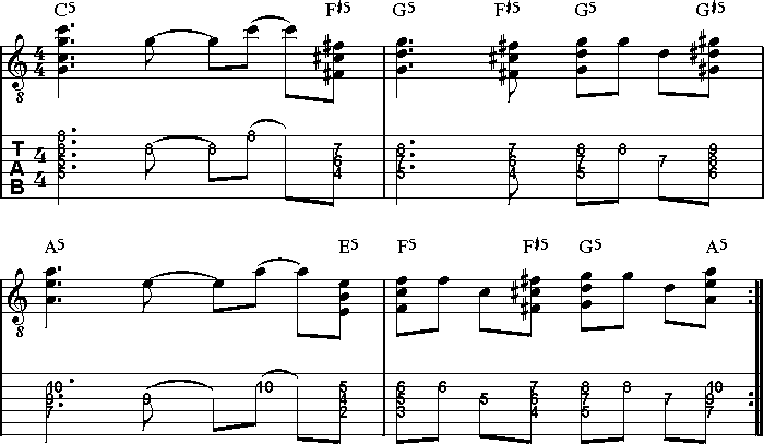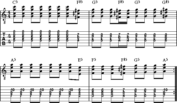 gerade vorgestellten oktavierten Powerchordversionen eingesetzt.