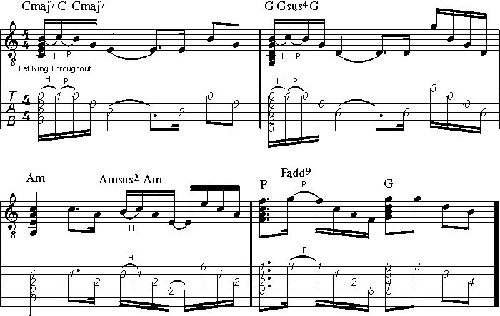 Gsus4 und wieder zurück zum G.Im dritten Takt gilt der Spruch: Never