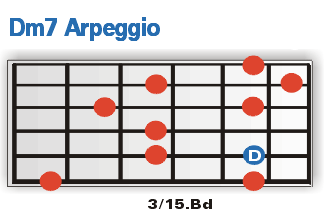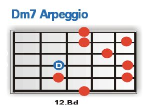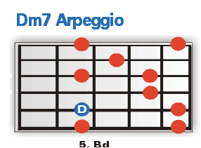 PG Arpeggio Zone Seite 2Den Anfang wollen wir heute mit den wichtigsten Fingersätzen eines Dm7 Arpeggios machen. Lerne die Teile auf jeden Fall auswendig und vergiss nicht, dir auch die Lage der einzelnen "Grundtöne" (blau eingefärbt) einzuprägen. Schließlich willst du die Arps ja nicht nur als Dm7er zum besten geben, oder?! Trainiere alle dargestellten Arpeggien so, wie wir es dir auf der letzten Seite vorgemacht haben: Also einmal schlicht und ergreifend Ton für Ton rauf und runter und dann in den spannenderen und spieltechnisch wesentlich anspruchsvolleren Vierergruppen. |