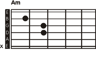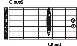 Kommen wir so zum zweiten Notenbild. Die Basis des Parts bildet eine drei Akkorde umfassende Kadenz. Folgende Chords kommen zum Einsatz: