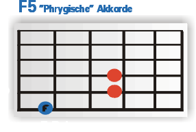 Zurück zum Riff. Nutze den Song auf jeden Fall auch zu Studienzwecken. Nur so bist du in der Lage, dir den Mechanismus universell nutzbar machst. Schließlich willst du das Tool ja nicht nur im Zusammenhang mit der Messiah's Kiss Nummer einsetzen. Versuche doch auch mal eigene Versuchsreihen mit der Scale anzusetzen. Es lohnt sich wirklich! Um dich in dieser Hinsicht zu unterstützen, haben wir dir zum Abschluß des Workshops alle zur Skala passenden Powerchords notiert.